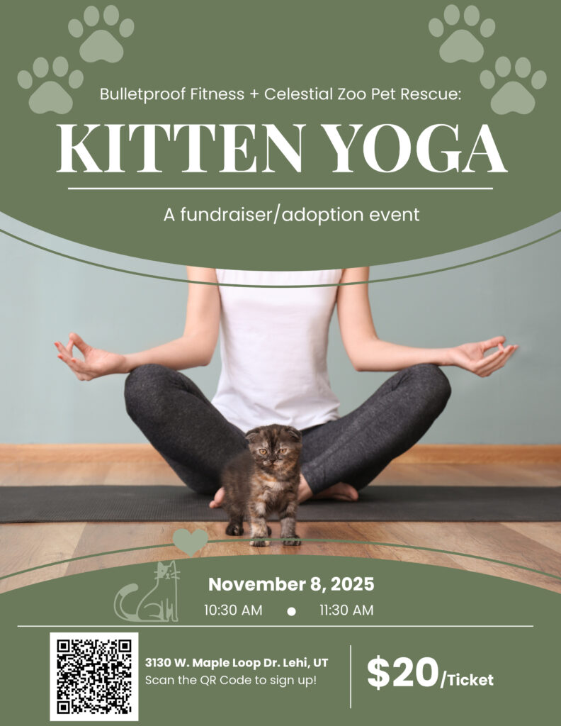 What: Unwind, stretch, and share your mat with adoptable furry friends! Kitten Yoga combines a gentle yoga flow with the playful energy of friendly kittens roaming the studio. This 45-minute class is perfect for all levels and focuses on stress relief, mobility, and mindfulness—while giving you plenty of chances to cuddle or laugh at a kitten’s curiosity. Proceeds go to Celestial Pet Rescue.
